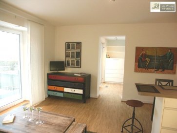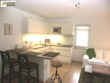 Magnifique appartement d'un standard élevé de 55 m2, meublé et équipé, situé au rez-chaussée élevé face postérieure de la petite résidence avec terrasse de 17 m2 et se compose comme suit :