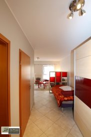 Hall d’entrée, cuisine équipée et intégrée dans le living avec coin nuit, salle de douche, débarras